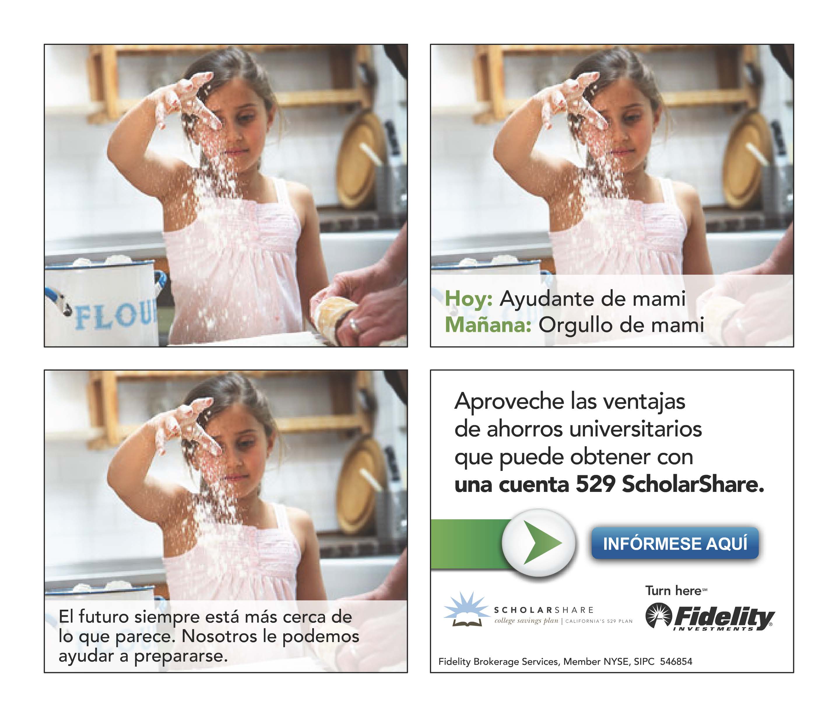 With 1/3rd of California residents being Hispanic, Fidelity ScholarShare College Savings Plan needed to develop a dialogue with a key target: Hispanic adult women 25-54, building awareness and driving enrollment.