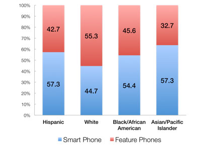 Almost 24% of LATINX consumers follow their favorite brands and companies on social media sites vs. 20% of non LATINX and they are largely female. In fact, (she/her) LATINX bloggers are 37% more likely than the general market to publish a blog on a blogging platform or a social networking site. And 72% of the influencers active in blogging are doing it in English. Almost 24% of LATINX also indicate that social sharing provides them an outlet to share information about companies and products they like vs. 20.2% of the general population. The LATINX segment are heavy smart phone users with 75% of them accessing the web via phone compared with 60% of Whites.* (*2013 e-marketer) According to a recent Neilson Research study Hispanics own smart phones more than any other group, they have more apps, shop more and watch more video (62%). Facebook is the fourth most popular website among Hispanics, reaching nearly 82% of the entire online demographic. Brands are finding social media a necessary way to reach customers quickly with offers and coupons through social media sites like Facebook, Instagram Twitter and YouTube.
